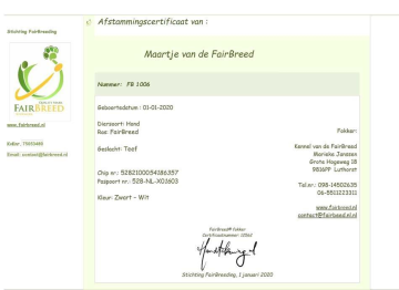 Is de afstamming van het door u gefokte dier bekend, dan kunt u afstammingscertificaten bestellen.